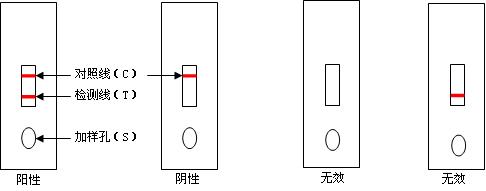 4 失效:在觀察孔內(nèi),對照線區(qū)(C)和檢測線區(qū)(T)都不出現(xiàn)色線;或僅檢測線區(qū)(T)出現(xiàn)色線。
